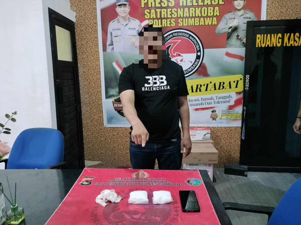 Menindaklanjuti informasi tersebut, Tim Opsnal Sat Resnarkoba Polres Sumbawa bergerak cepat menuju TKP melakukan penangkapan dan penggeledahan terhadap seorang pria terduga pelaku tersebut.