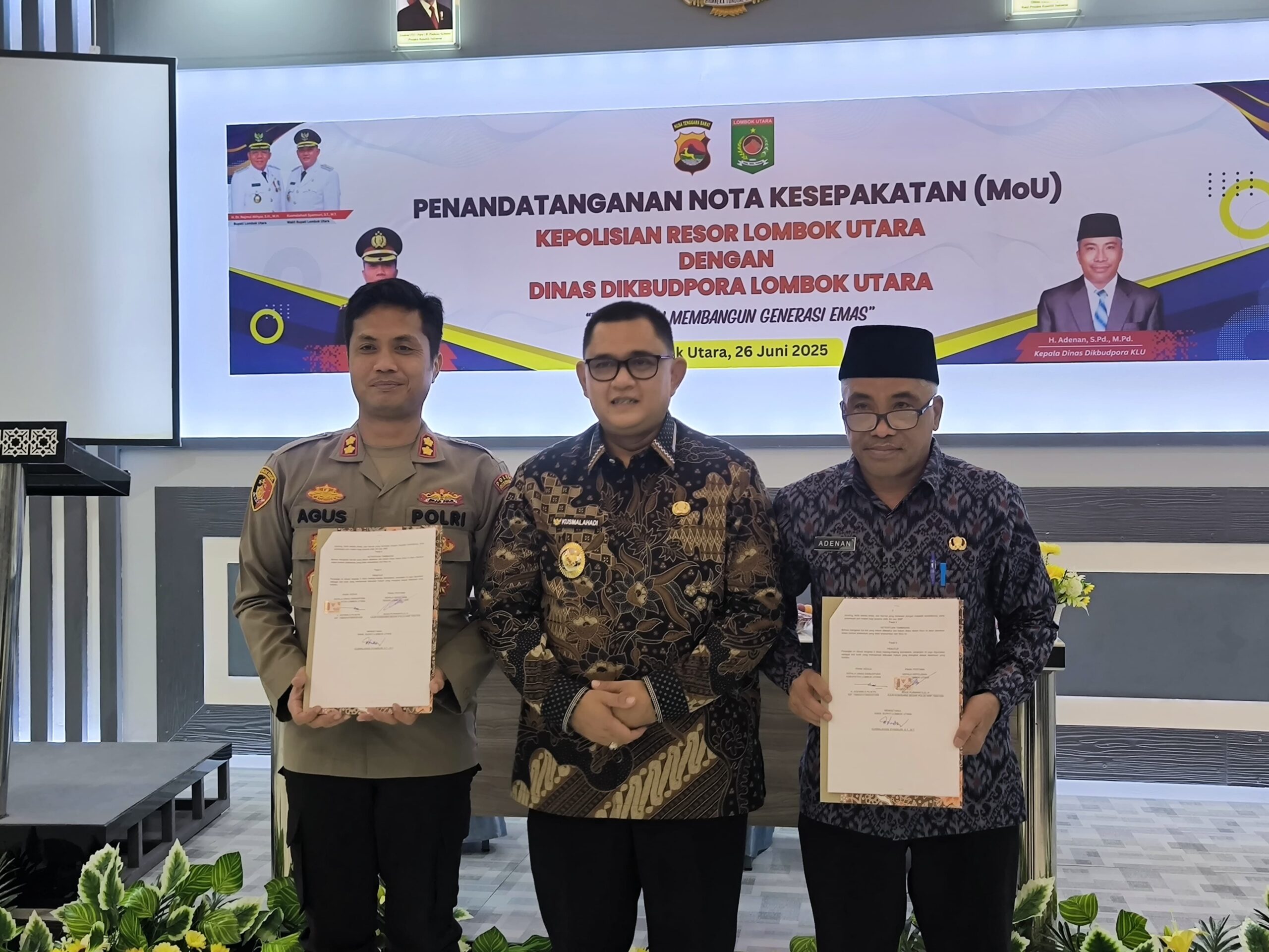Lombok Utara – Dalam rangka memperkuat sinergi antara institusi pendidikan dan kepolisian, Polres LomPobok Utara menandatangani nota kesepakatan (MoU) dengan Dinas Pendidikan, Kebudayaan, Pemuda dan Olahraga (Dikbudpora) Kabupaten Lombok Utara. Penandatanganan MoU berlangsung di Medana, Kecamatan Tanjung, Kabupaten Lombok Utara, pada Kamis (26/6/2025).