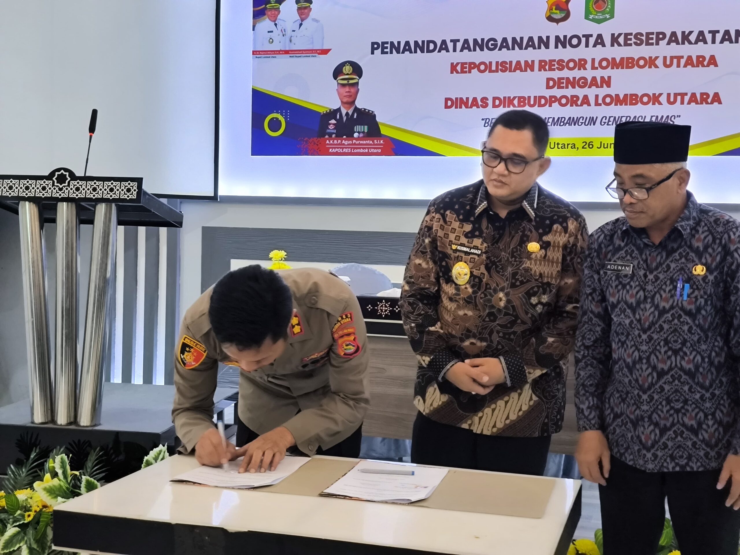 Lombok Utara – Dalam rangka memperkuat sinergi antara institusi pendidikan dan kepolisian, Polres LomPobok Utara menandatangani nota kesepakatan (MoU) dengan Dinas Pendidikan, Kebudayaan, Pemuda dan Olahraga (Dikbudpora) Kabupaten Lombok Utara. Penandatanganan MoU berlangsung di Medana, Kecamatan Tanjung, Kabupaten Lombok Utara, pada Kamis (26/6/2025).