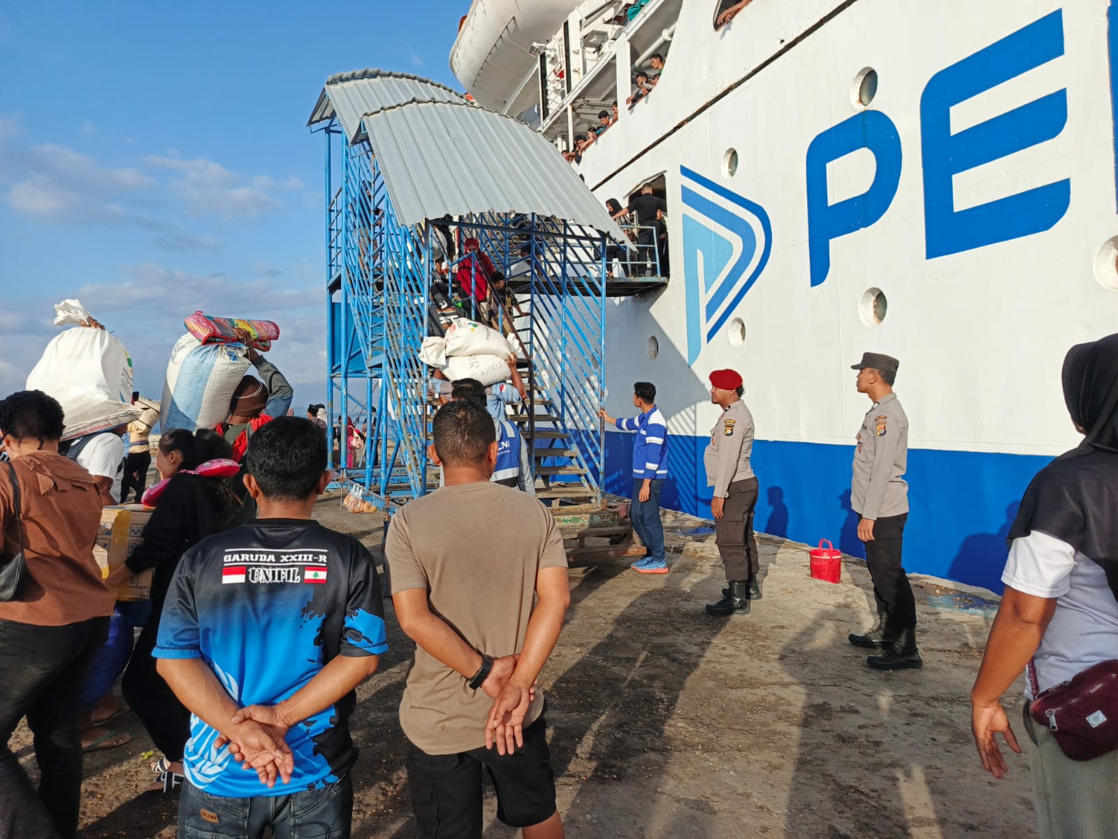Kota Bima, NTB (1 Juli 2025) – Guna memastikan kelancaran dan keamanan proses embarkasi dan debarkasi penumpang, Polsek Kawasan Pelabuhan Laut Bima melaksanakan pengamanan terhadap kapal KM. AWU yang bersandar di Pelabuhan Bima pada Selasa pagi (1/7/2025) sekitar pukul 07.00 WITA.