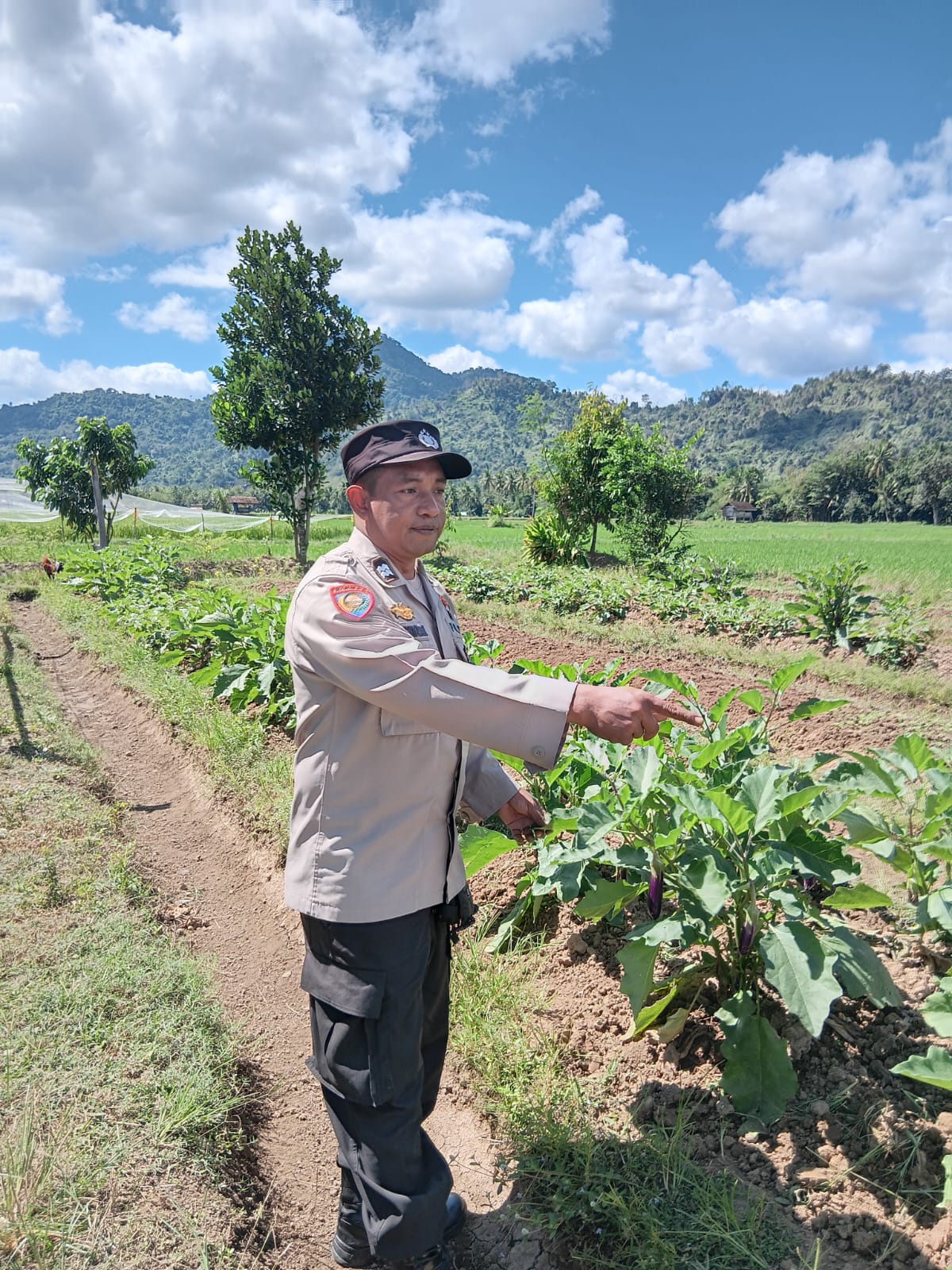 Bhabinkamtibmas Desa Beru turut memberikan motivasi kepada warga agar terus menjaga dan mengembangkan kebun pekarangan sebagai sumber pangan sehat keluarga serta cadangan kebutuhan rumah tangga.