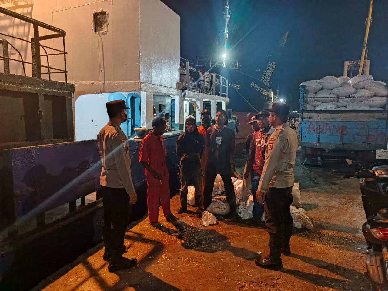 “Personel kami melaksanakan patroli saat kegiatan bongkar muat jagung berlangsung oleh para buruh di area pelabuhan. Kami juga menyampaikan imbauan kepada mereka agar tidak membawa, menyimpan, atau menguasai senjata tajam (sajam), serta tidak mengonsumsi maupun memperjualbelikan minuman keras (miras), karena dapat mengganggu keamanan dan ketertiban,” ujar Iptu Kuntho.