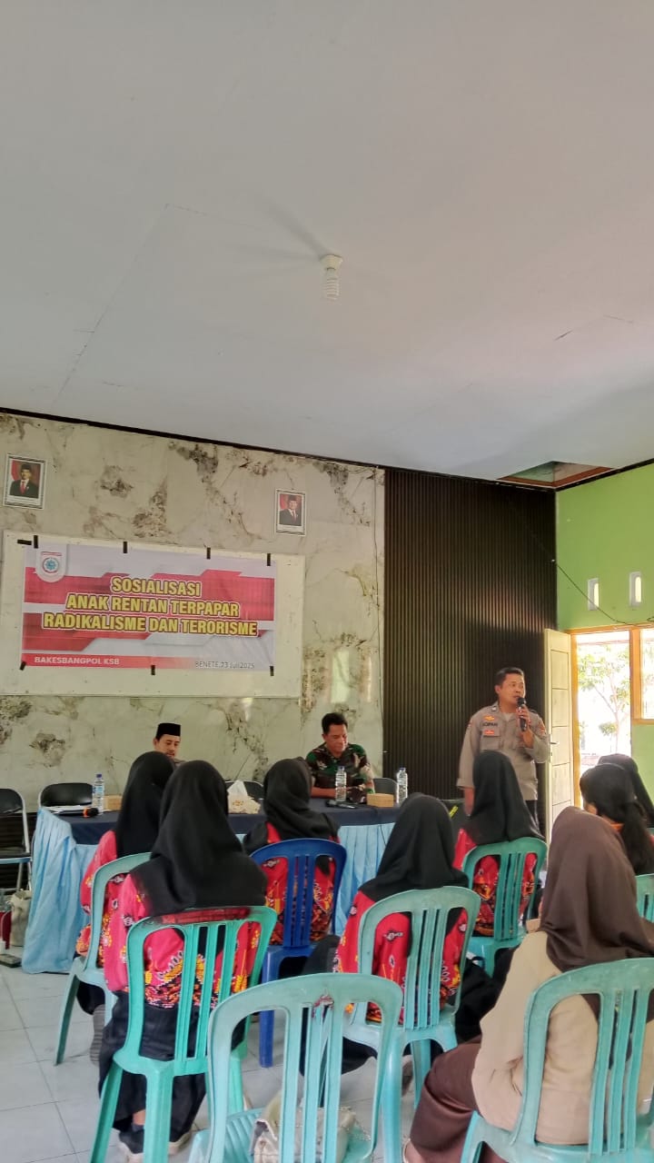 Sumbawa Barat, NTB – Dalam rangka mencegah penyebaran paham radikal dan terorisme di kalangan generasi muda, Satuan Binmas Polres Sumbawa Barat bersama instansi terkait melaksanakan kegiatan sosialisasi bertema “Anak Rentan Terpapar Paham Radikal dan Terorisme” pada Rabu, 23 Juli 2025 pukul 09.00 WITA bertempat di SMK Negeri 1 Maluk, Kecamatan Maluk, Kabupaten Sumbawa Barat.