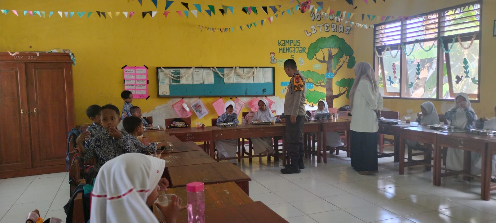 Program MBG merupakan salah satu inisiatif pemerintah untuk mendukung tumbuh kembang anak melalui pemberian makanan sehat dan bergizi secara rutin di sekolah. Dalam kegiatan ini, para siswa tampak antusias menikmati menu makanan yang disediakan.