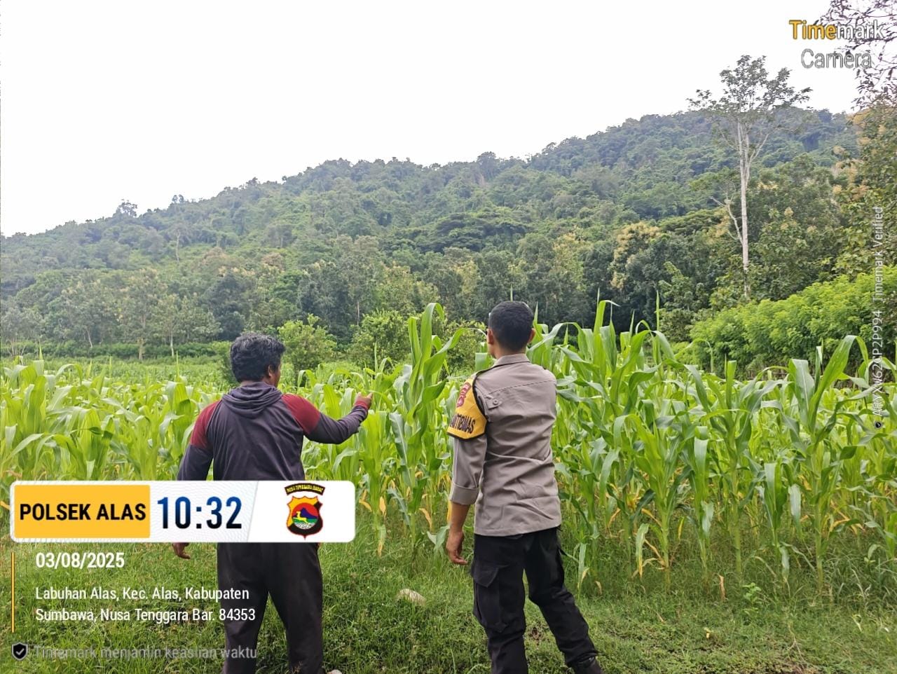 Sumbawa Besar, NTB — Sinergi antara Polri dan masyarakat dalam mendukung ketahanan pangan terus berlanjut. Pada Minggu, 3 Agustus 2025, pukul 10.32 WITA, Bhabinkamtibmas Desa Labuhan Alas, Briptu Jody Satria Eko Prastowo, melaksanakan sambang dan pengecekan ladang jagung di Dusun Tarum, Desa Labuhan Alas, Kecamatan Alas, Kabupaten Sumbawa.
