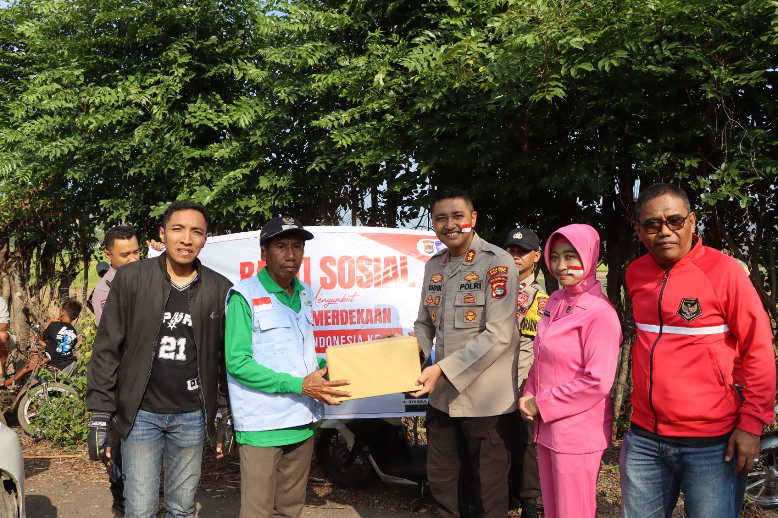 Bima, NTB (4 Agustus 2025) – Sebagai rangkaian dari kegiatan Touring Merah Putih dalam menyambut HUT ke-80 Republik Indonesia, Kapolres Bima Kota AKBP Didik Putra Kuncoro, S.I.K., M.Si melaksanakan kegiatan Bantuan Sosial (Bansos) kepada masyarakat Desa Sangiang, Dusun Tadewa, dan warga sekitar Polsek Wera, pada Minggu sore (3/8/2025).