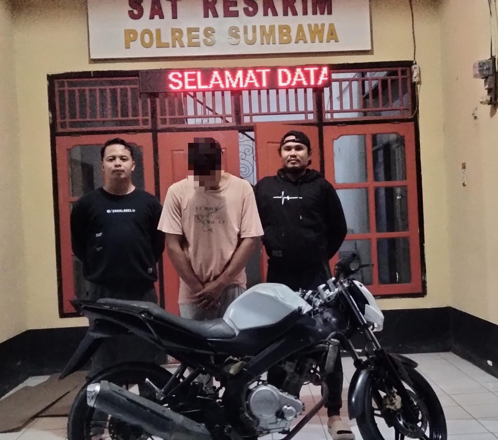 Barang bukti berupa satu unit motor Yamaha Vixion 150 cc warna putih berhasil diamankan dari tangan penadah. Kedua pelaku beserta barang bukti kini telah dibawa ke Mapolres Sumbawa untuk proses hukum lebih lanjut.