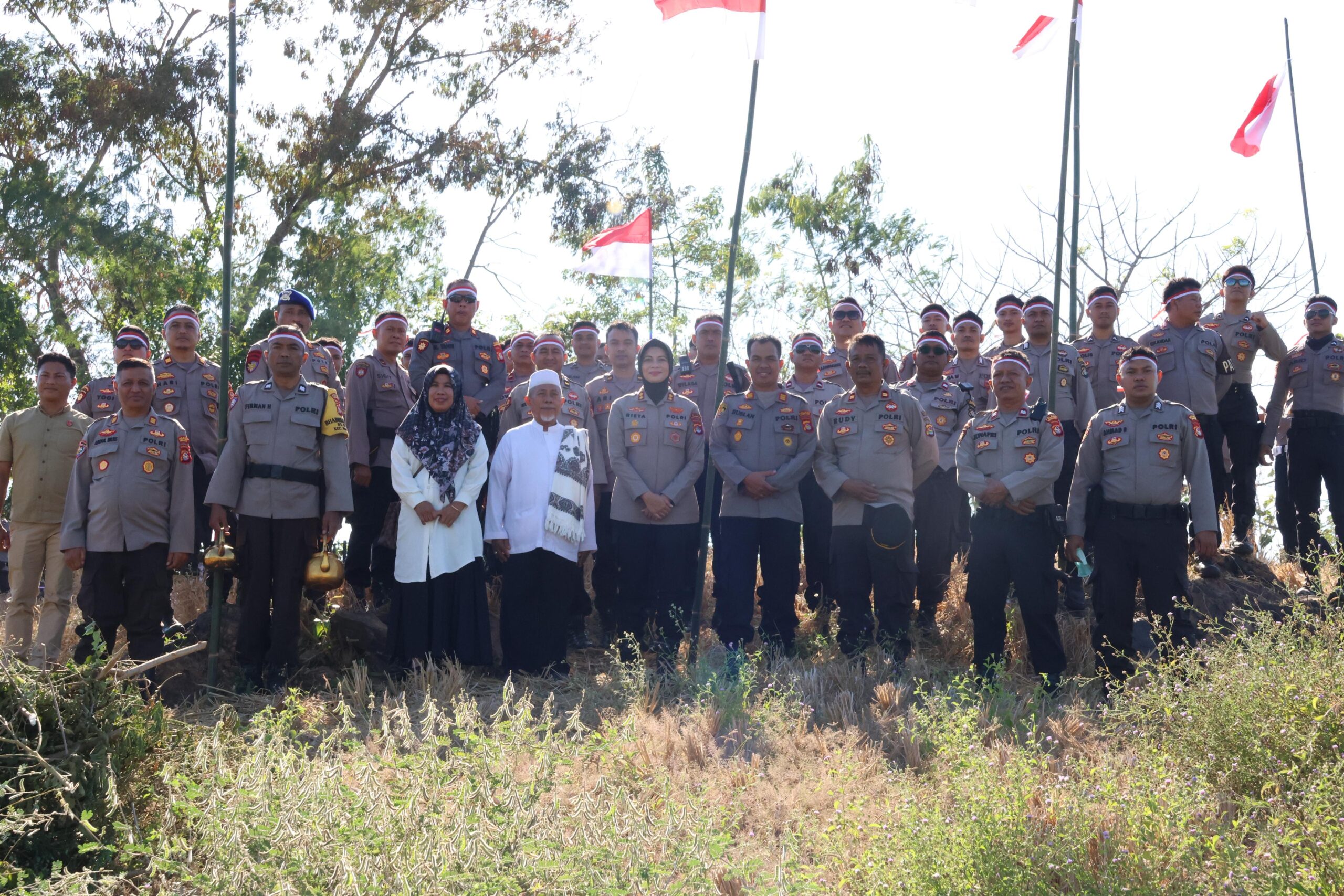 Sumbawa Besar, NTB — Semangat kemerdekaan ke-80 Republik Indonesia mulai berkobar di Kabupaten Sumbawa. Pada hari Selasa, 12 Agustus 2025, Polres Sumbawa bersama jajarannya melaksanakan upacara pengibaran bendera Merah Putih di lokasi yang sarat makna sejarah, yaitu Makam Syeh Said Abdullah Alkadri di Gunung Galesa, Kecamatan Moyo Hilir.