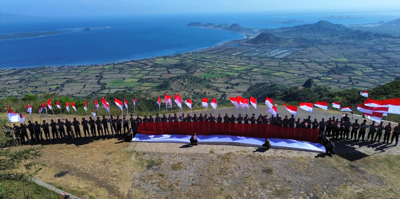 Sumbawa Barat — Semarak memperingati HUT ke-80 Kemerdekaan Republik Indonesia, Polres Sumbawa Barat Melaksanakan Kegiatan Pengibaran Bendera Merah Putih di Puncak Bukit Mantar, Desa Mantar, Kecamatan Poto Tano, Kabupaten Sumbawa Barat. Acara ini digelar penuh Semangat dengan Perpaduan Kindahan Alam Negeri Atas Awan. Kamis,(14/08/2025)