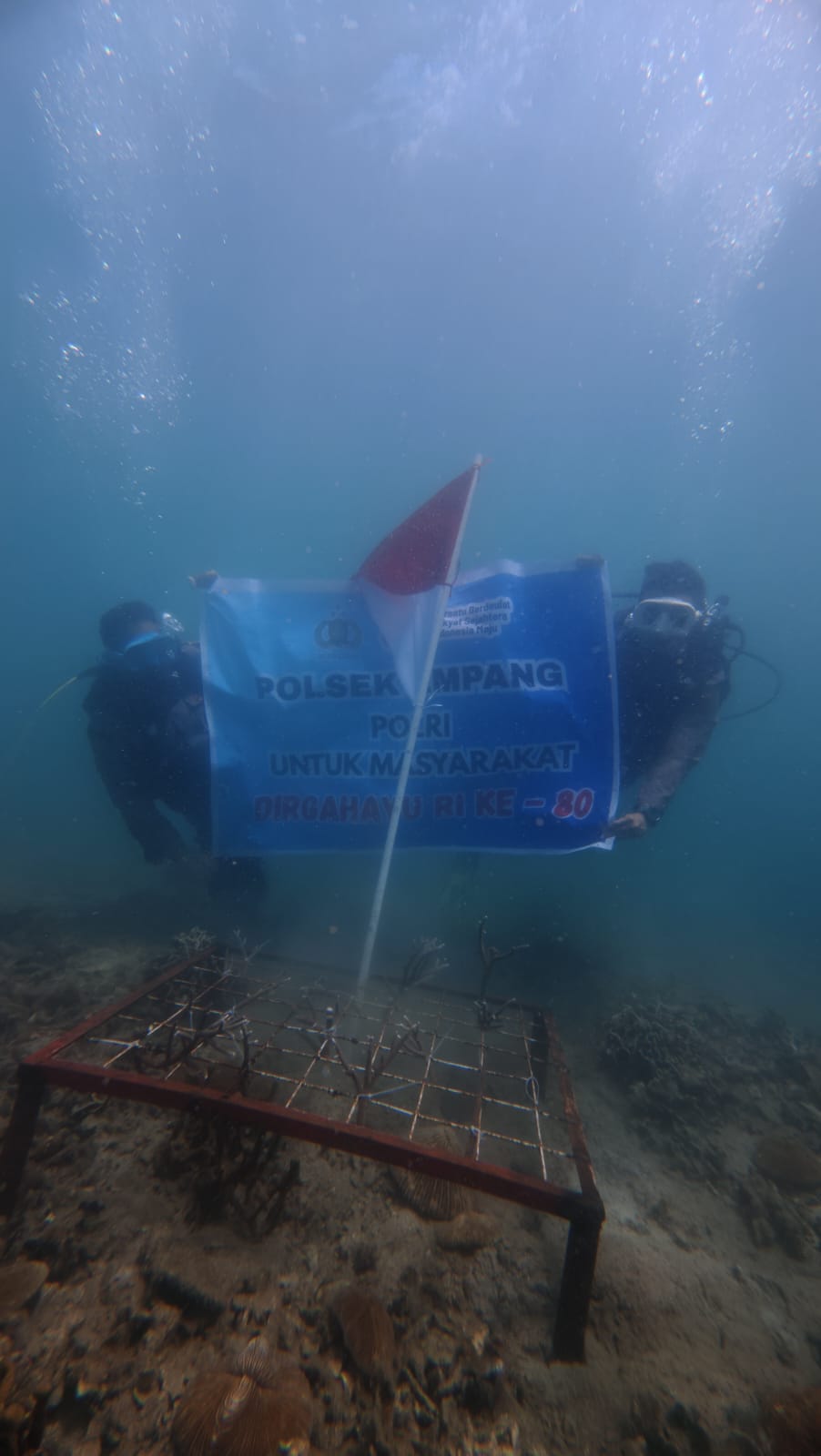 Sumbawa Besar, NTB — Dalam rangka menyambut HUT Kemerdekaan RI ke-80, sebuah acara unik dan inspiratif digelar di perairan Teluk Saleh, Desa Labuhan Jambu. Acara ini menggabungkan upacara pengibaran bendera Merah Putih di bawah laut dengan kegiatan transplantasi terumbu karang.