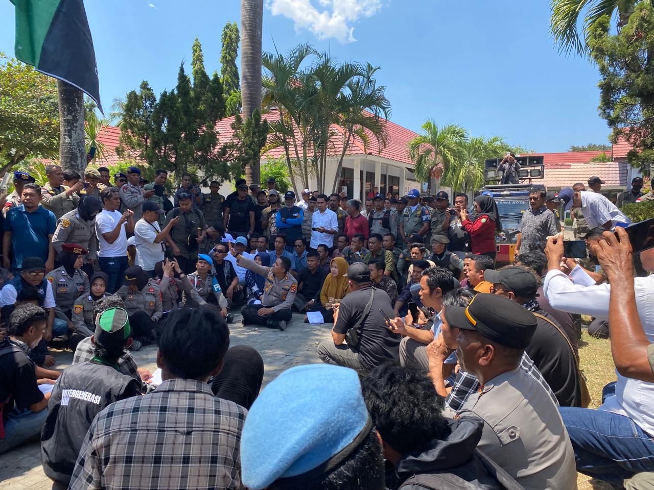 Dalam kesempatan itu, Kapolres Bima Kota bersama Ketua DPRD Kabupaten Bima dan Ketua DPRD Kota Bima duduk bersama di halaman kantor DPRD untuk menerima langsung aspirasi mahasiswa. Dialog terbuka pun digelar dengan suasana yang humanis.