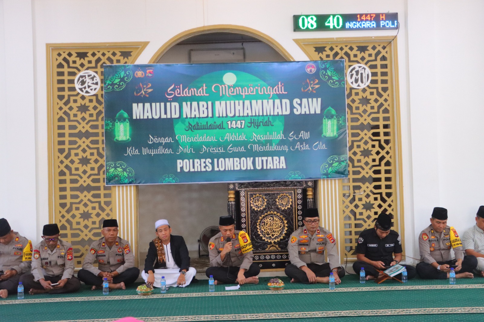 Lombok Utara – Polres Lombok Utara menggelar peringatan Maulid Nabi Muhammad SAW dengan tema “Dengan Meneladani Akhlak Rasulullah SAW, Kita Wujudkan Polri Presisi Guna Mendukung Asta Cita”, bertempat di Masjid Bhayangkara Polres Lombok Utara, Jumat, 5/9/2025.