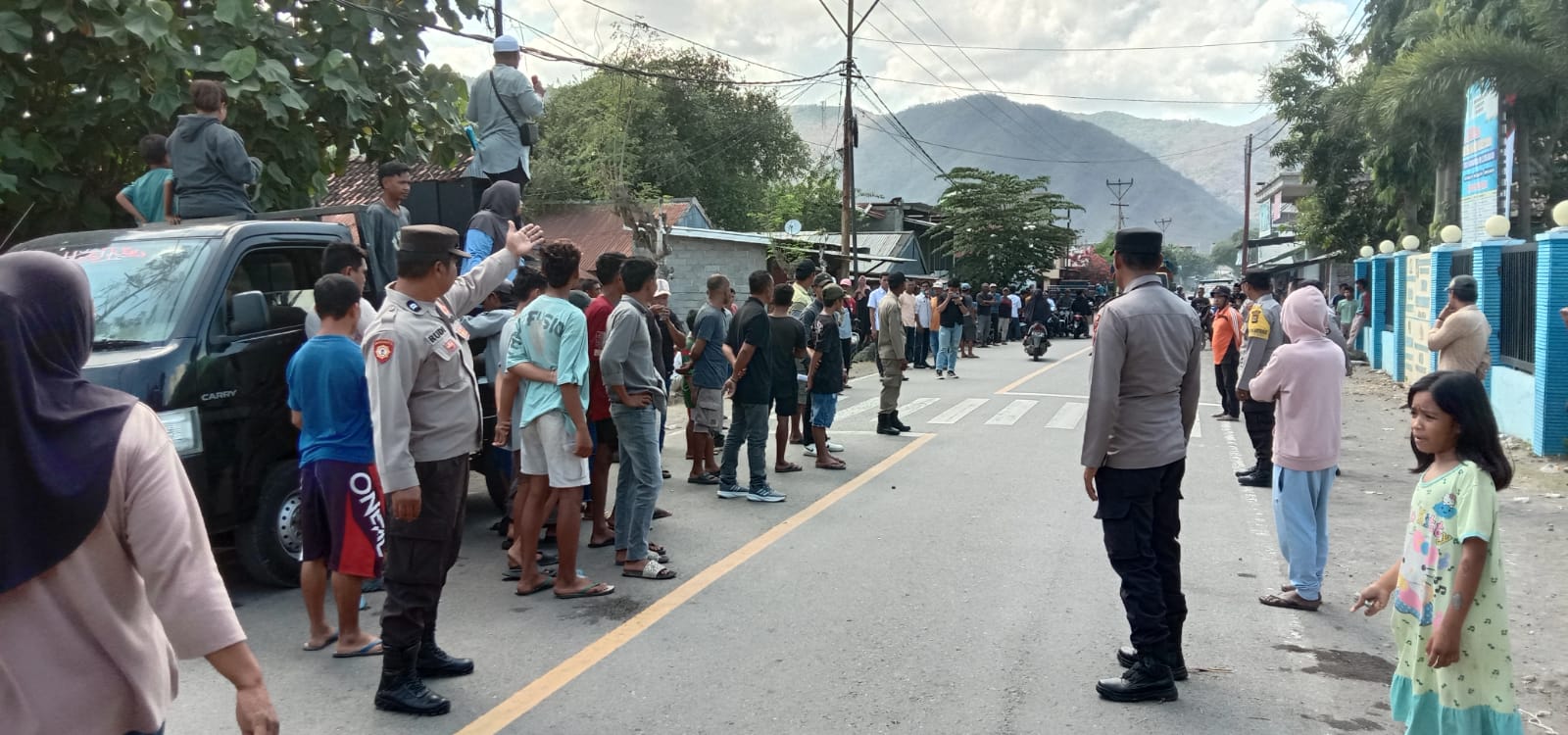 Di tengah memanasnya suasana, Kapolsek Kempo IPTU Jubaidin tampil sebagai pengendali lapangan. Ia memastikan jalannya aksi tetap dalam koridor hukum dan tidak menimbulkan gesekan antara massa dengan aparat maupun pemerintah desa.
