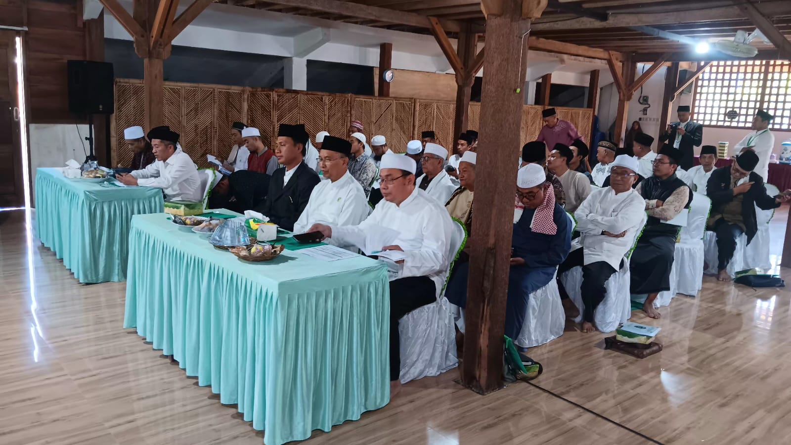 Kegiatan ini turut dihadiri oleh Bupati Lombok Utara, Dr. H. Najmul Akhyar, S.H., M.H., Ketua Umum MUI KLU TGH Abdul Karim Abdul Gapur, perwakilan MUI Provinsi NTB, pimpinan Ponpes, tokoh agama Islam se-Kabupaten Lombok Utara, serta undangan lainnya dengan estimasi sekitar 50 peserta.