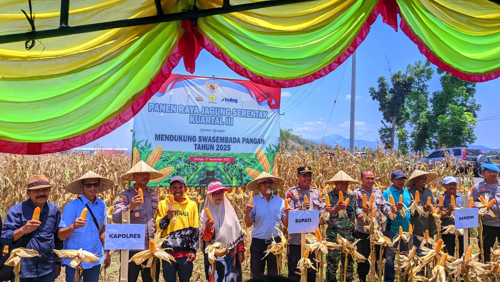 olres Dompu bersama Forkopimda dan para pemangku kepentingan terkait menghadiri kegiatan Panen Raya Jagung Serentak Kuartal III di Desa Kempo, Kecamatan Kempo, Kabupaten Dompu. Kegiatan ini merupakan bagian dari dukungan terhadap program Swasembada Pangan Tahun 2025 serta implementasi instruksi Presiden RI terkait ketahanan pangan nasional.