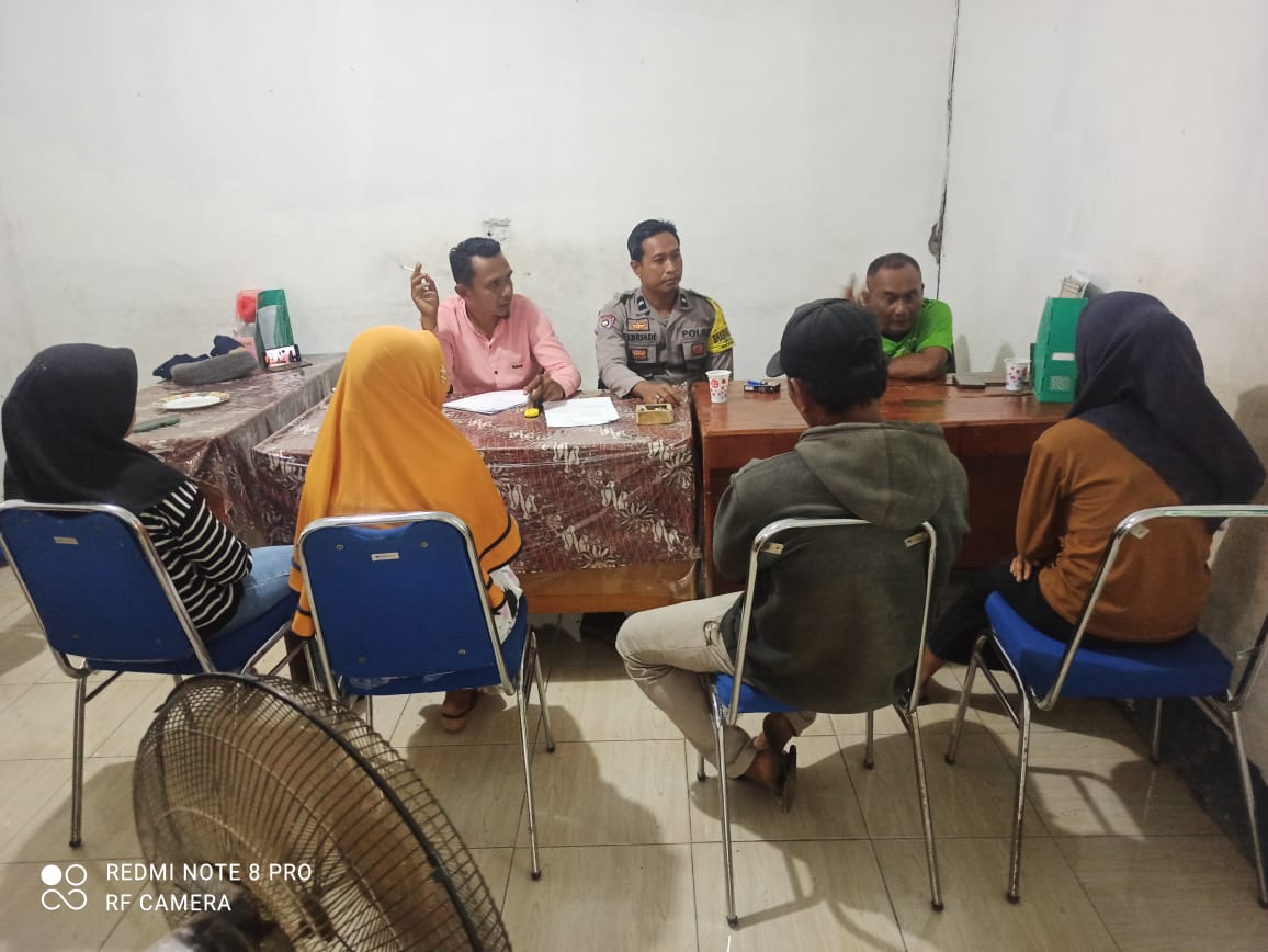 habinkamtibmas Desa Jambu, Aipda Roni Febriadi, bersama Kepala Desa dan Babinsa memfasilitasi penyelesaian masalah antara Sdri. Lilis Karlina dan Sdri. Rukmini di Kantor Desa Jambu, Selasa 30 September 2025.