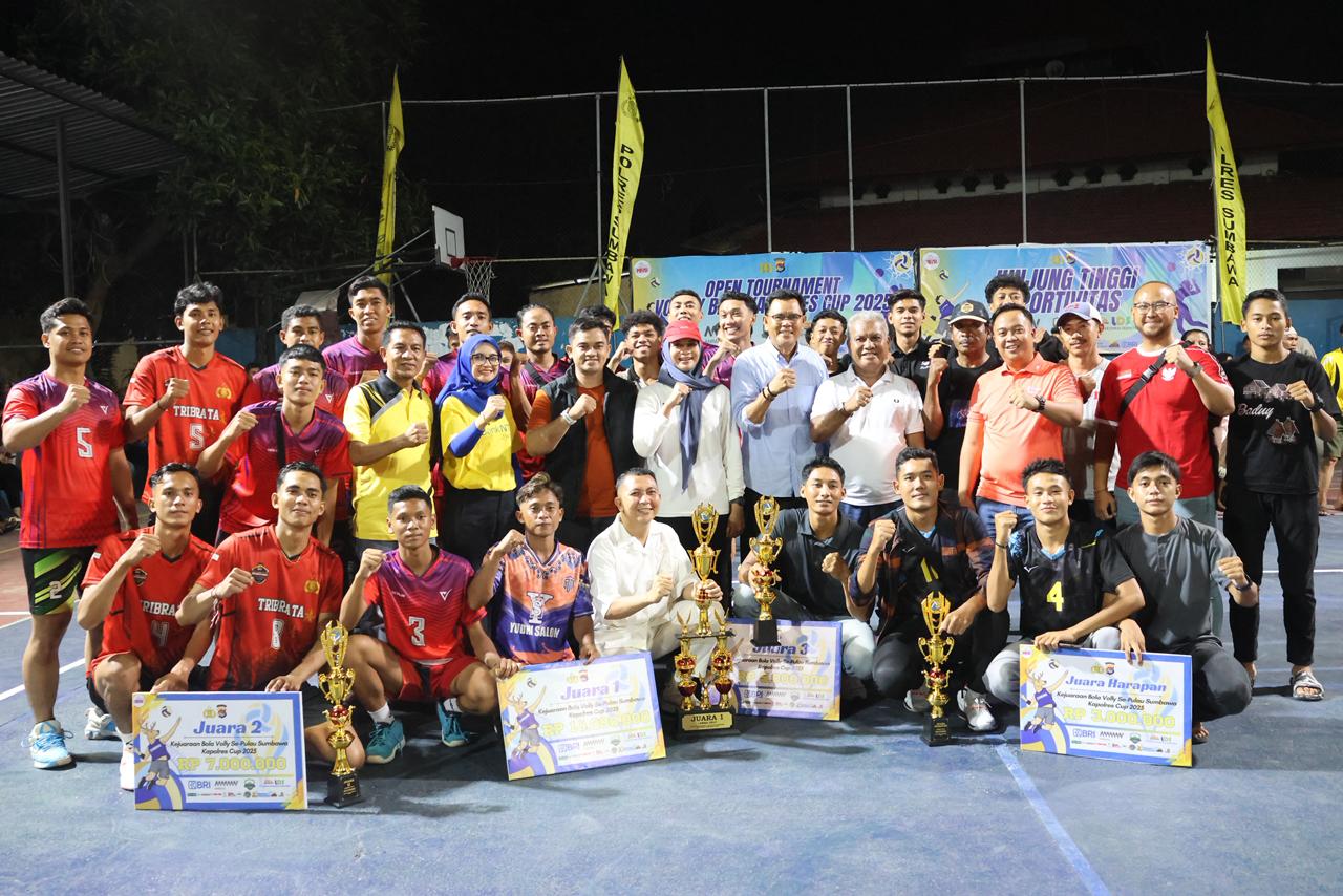 Sumbawa Besar, NTB – Turnamen Voli Terbuka Kapolres Cup resmi berakhir setelah menyuguhkan laga final yang sengit di Lapangan Satya Wira Polres Sumbawa pada Senin malam, 6 Oktober 2025, pukul 20.00 WITA. Gelaran yang sukses menjaring atlet dan menjadi sarana hiburan masyarakat ini ditutup secara langsung oleh Bupati Sumbawa.