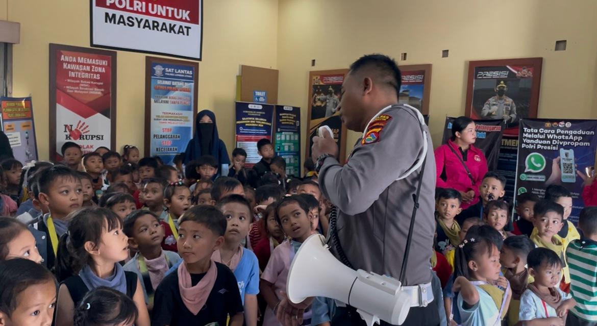“Anak-anak diperkenalkan dengan lingkungan Mako Polres, diajarkan tentang tugas dan fungsi kepolisian, serta diberikan pemahaman dasar mengenai aturan berlalu lintas melalui cara yang menyenangkan,” jelas Kasat Lantas.