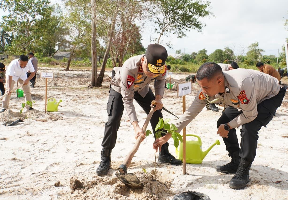 Belitung Timur. Kapolda Kepulauan Bangka Belitung Irjen Pol Hendro Pandowo melakukan kunjungan kerja ke Polres Belitung Timur, Selasa (14/10/2025). Dalam lawatan ini, Kapolda bersama jajaran dan masyarakat setempat melaksanakan kegiatan penanaman satu juta pohon sebagai bagian dari program bakti Polri untuk lingkungan.