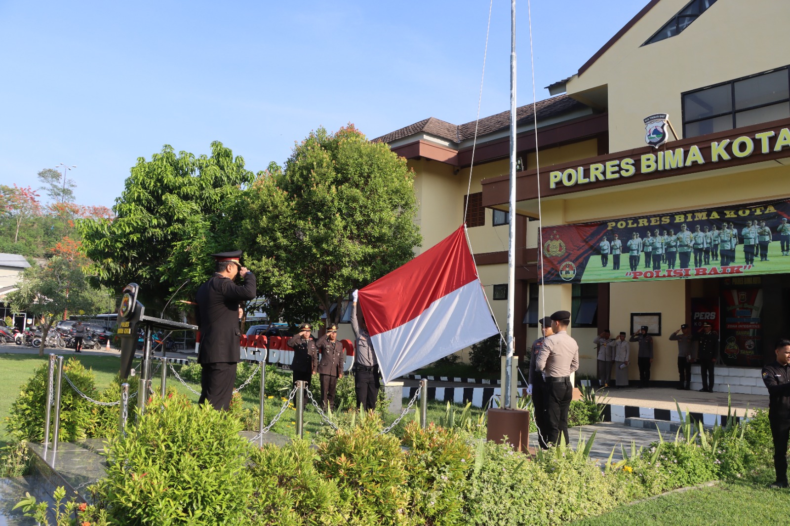 Upacara berlangsung khidmat dengan Kapolres Bima Kota AKBP Didik Putra Kuncoro, S.I.K., M.Si. bertindak sebagai Inspektur Upacara.