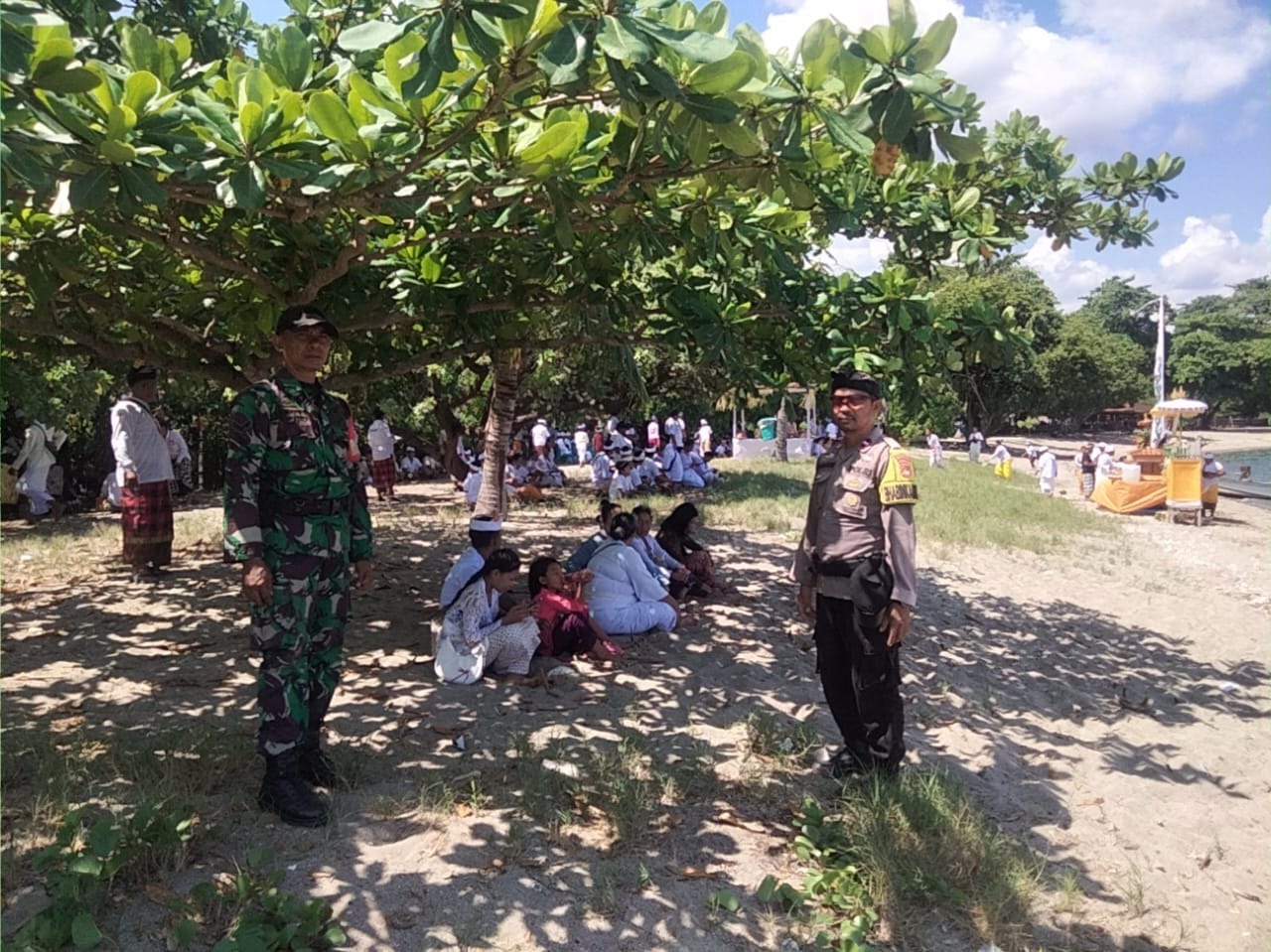 Sumbawa Besar, NTB — Umat Hindu di Desa Labuhan Badas melaksanakan rangkaian upacara Melasti, yaitu kegiatan pembersihan atau penyucian, yang dipusatkan di Pura Prama Gangga dan Pantai Kencana. Kegiatan ini mendapat pengamanan dan pengawalan dari pihak Kepolisian dan TNI.