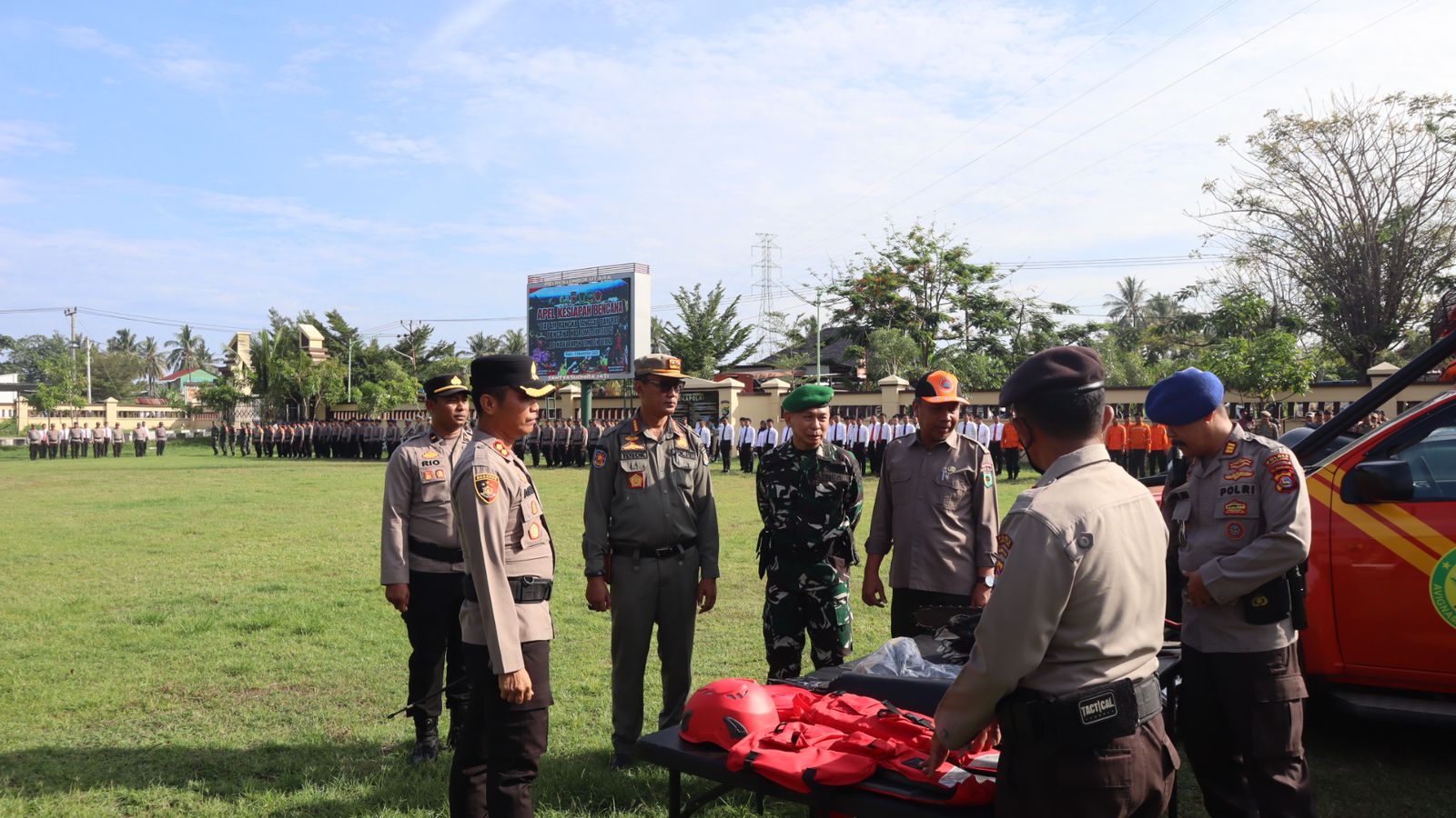 Usai pelaksanaan apel, kegiatan dilanjutkan dengan pemeriksaan kendaraan dinas dan peralatan SAR milik Sat Samapta dan instansi terkait sebagai langkah pengecekan kesiapan operasional di lapangan.