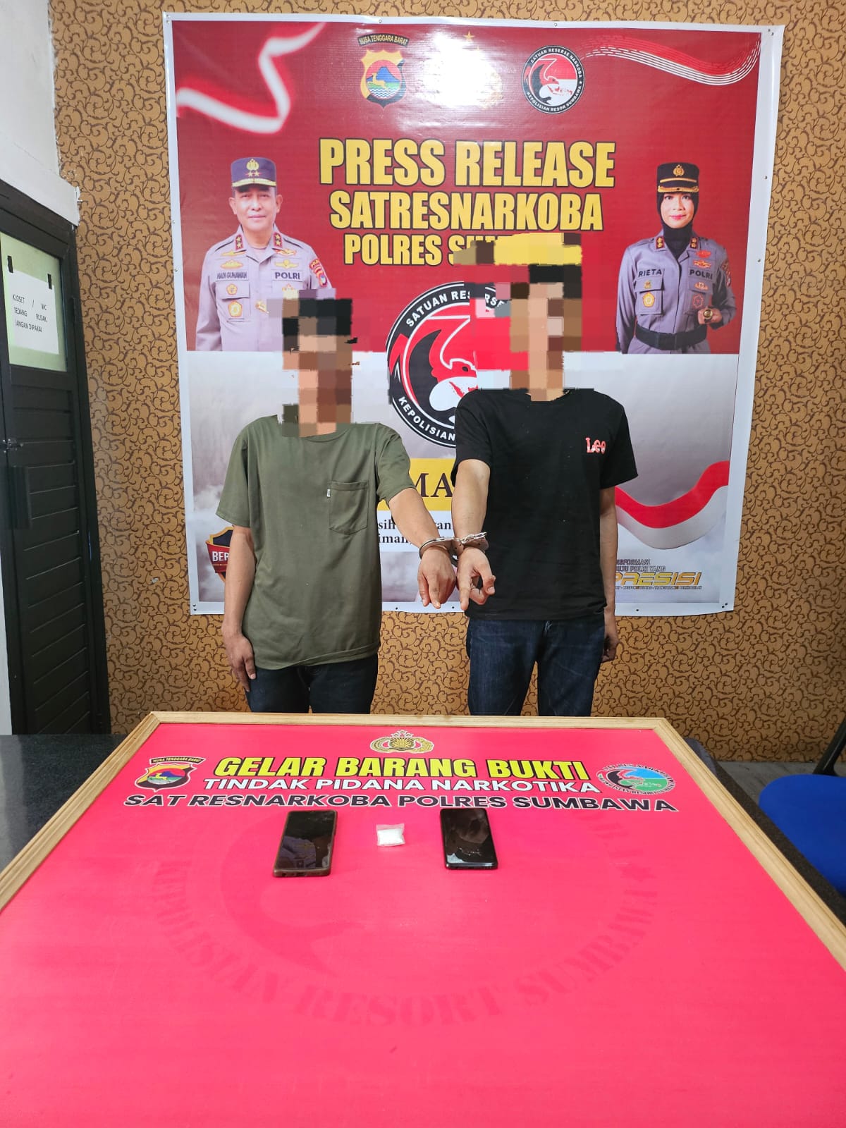Penangkapan dilakukan pada Jumat, 07 November 2025, sekitar pukul 13.00 Wita, bertempat di Jalan Raya Dusun Brang Bage, Kecamatan Alas. Awalnya, tim gabungan berencana melakukan penangkapan di rumah pelaku di Alas Barat. Namun, setelah mendapat informasi bahwa keduanya akan bertransaksi di Kecamatan Alas, tim dibagi menjadi dua untuk melakukan pengejaran dan berhasil mengamankan kedua pelaku yang berboncengan menggunakan sepeda motor Honda Beat putih.