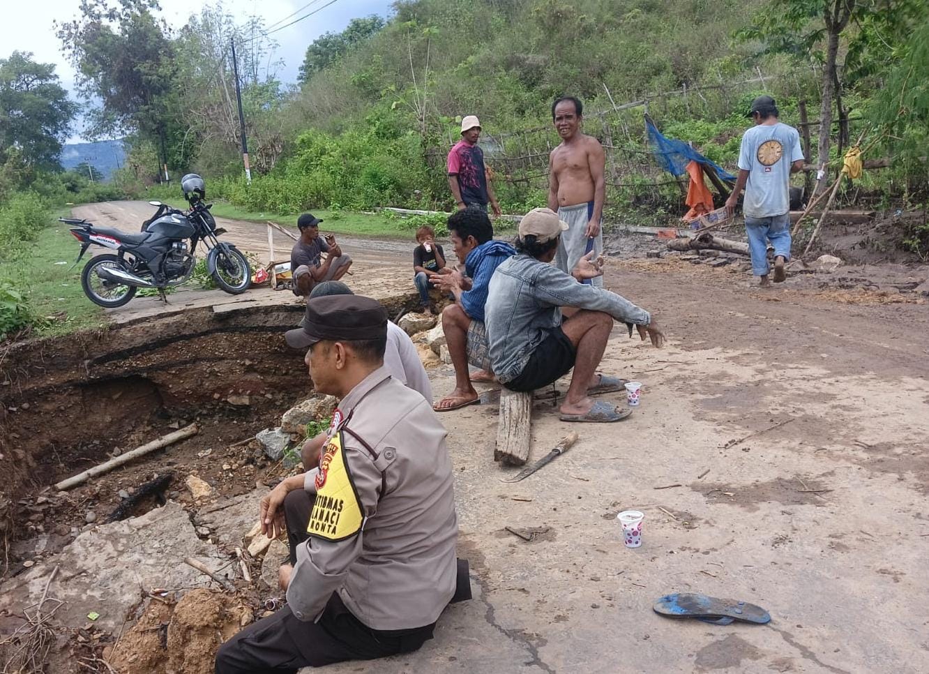 Bripka Bambang Setiawan Bhabinkamtibmas Polsek Monta Polres Bima Polda NTB yang mendapatkan informasi tersebut langsung bergegas menuju lokasi longsor.