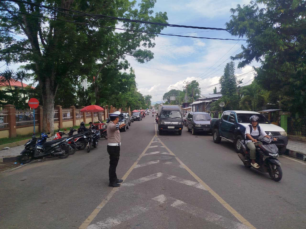 Tiga personel Sat Lantas, yakni Brigadir Arwin Agustiawan, Brigadir Jalaludin, dan Bripda M. Ruslan, ditugaskan untuk memastikan situasi kawasan tetap aman, tertib, dan lancar selama kegiatan berlangsung.