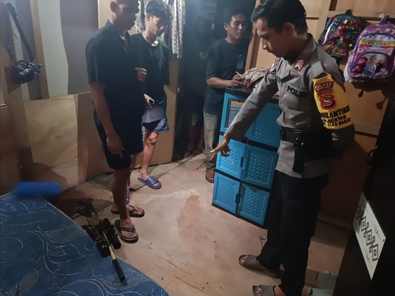 “Saksi Deni (operator kafe) dan Putri yang datang ke kamar korban segera menemukan korban R sudah tergeletak bercucuran darah dengan posisi senapan angin berada di samping kanan tubuhnya. Korban kemudian segera dilarikan ke Puskesmas Poto Tano.” ujar Kapolsek.