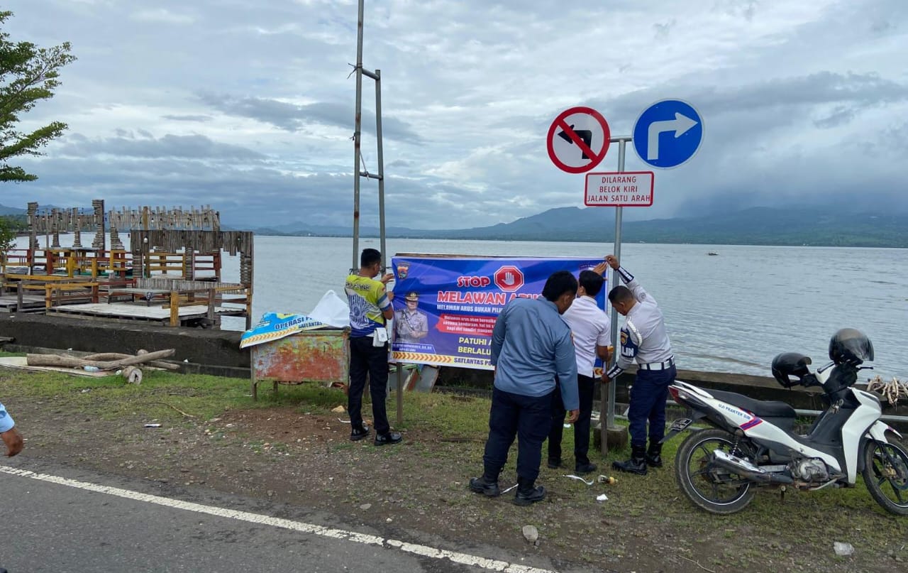 Wujudkan Kamseltibcarlantas Yang Aman, Satlantas Polres Bima Memasang Spanduk Larangan Melawan Arus